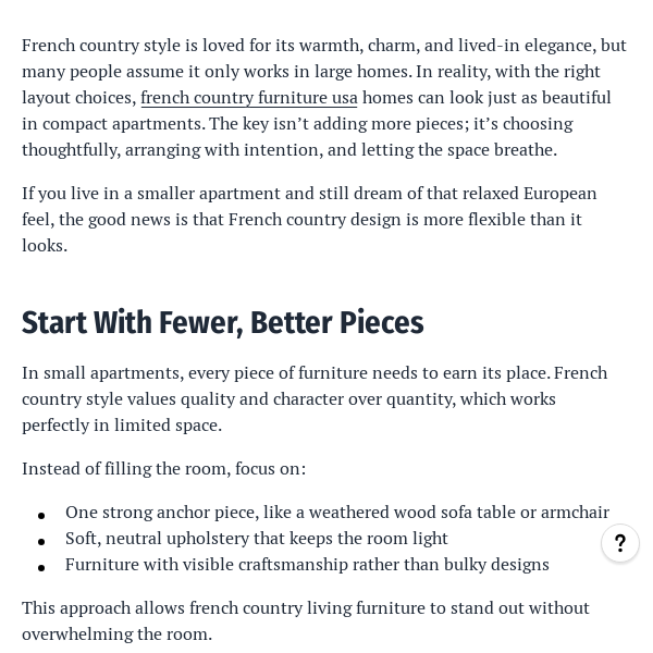 French Country Furniture Layout Tips for Small Apartments